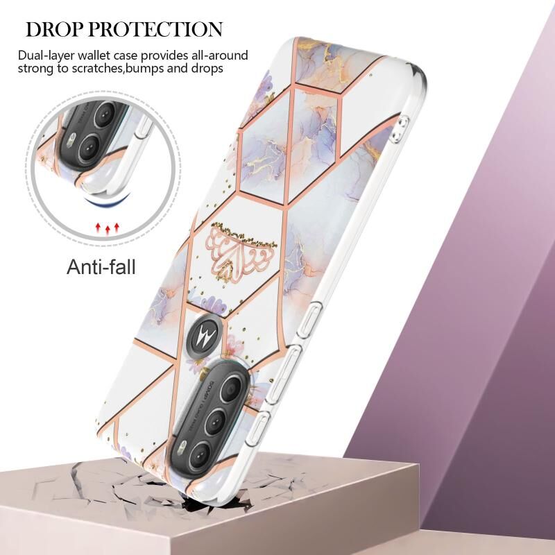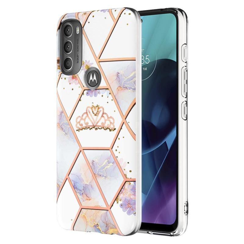 Θήκη τηλεφώνου TPU με σχέδιο μαρμάρου και λουλουδιών για Motorola Moto G71 5G (Crown)