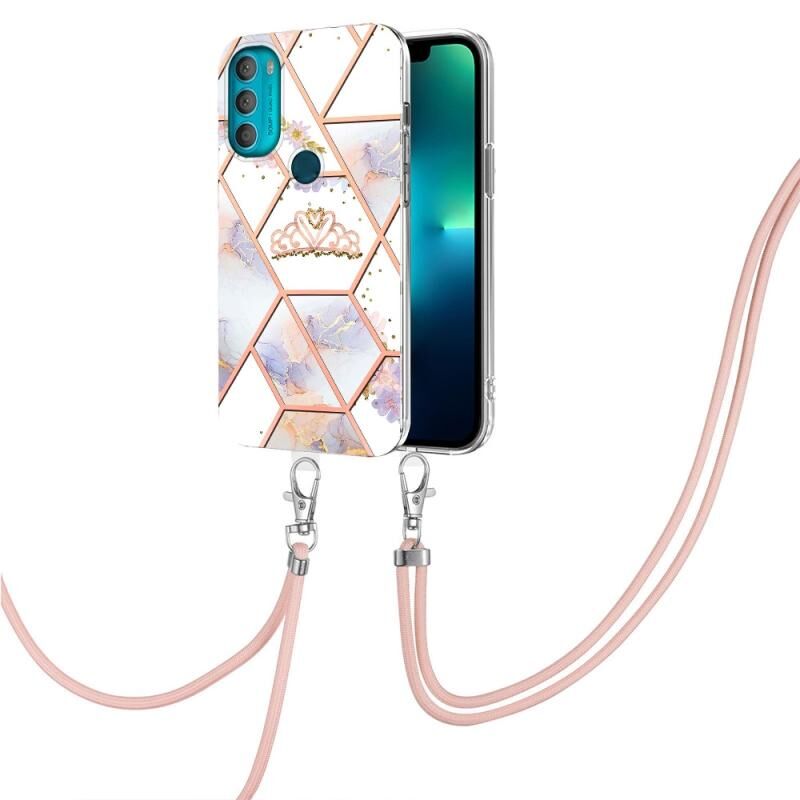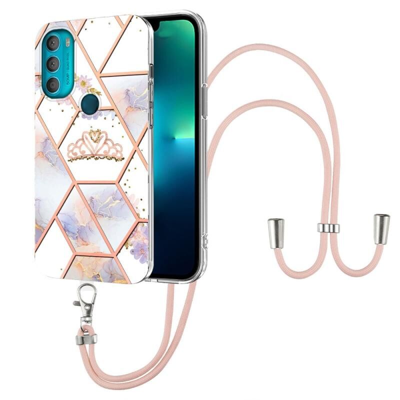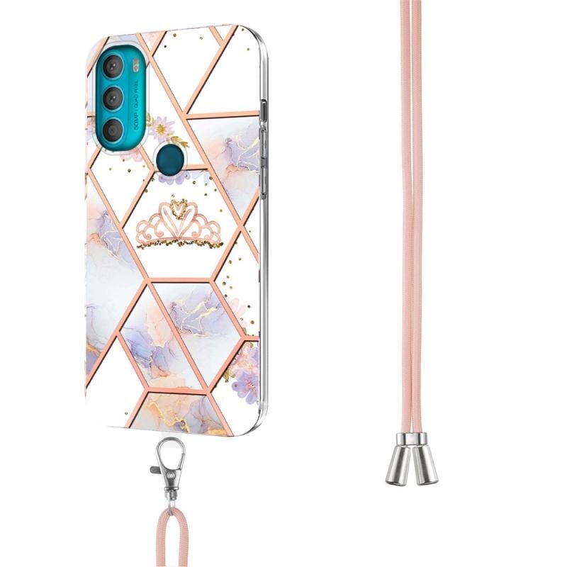 Θήκη τηλεφώνου TPU με σχέδιο μαρμάρου και λουλουδιών για Motorola Moto G71 5G με κορδόνι (Imperial Crown)
