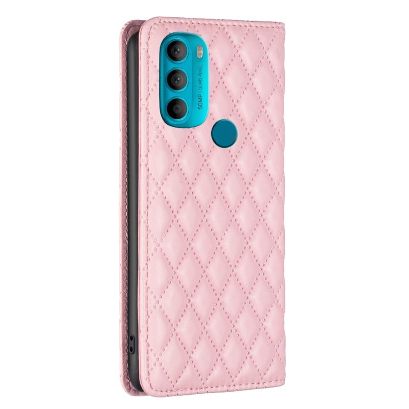 Θήκη κινητού τηλεφώνου με μαγνητικό δέρμα τύπου flip για Motorola Moto G71 Diamond Lattice (ρόζ)