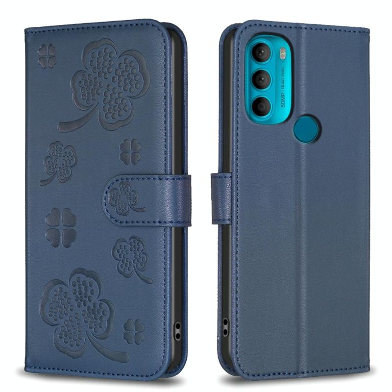 For Motorola Moto G71 Four-leaf Embossed Leather Phone Case(Blue)