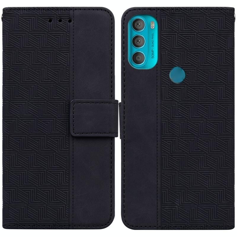 Για Motorola Moto G71 Γεωμετρική ανάγλυφη δερμάτινη θήκη τηλεφώνου (Μαύρο)
