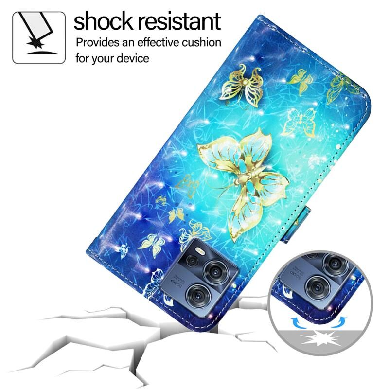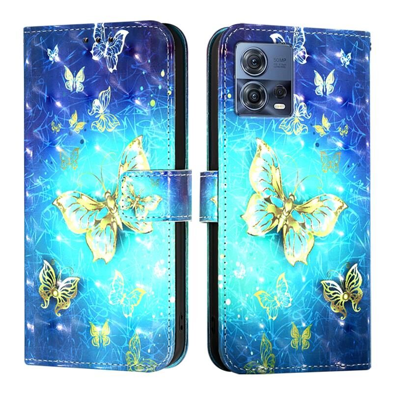 Θήκη τηλεφώνου δερμάτινη με οριζόντιο άνοιγμα και τρισδιάστατη ζωγραφική για Motorola Moto G72 (Χρυσή Πεταλούδα)