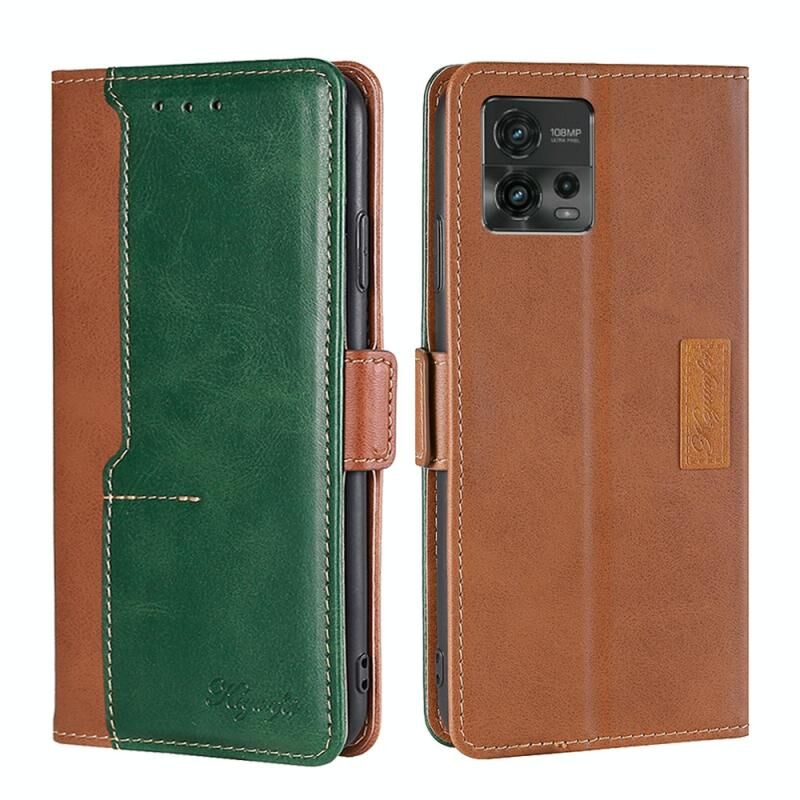 Για Motorola Moto G72 4G αντίθεση χρώμα πλευρά πόρπη δερμάτινη θήκη τηλεφώνου (ανοιχτό καφέ + πράσινο)