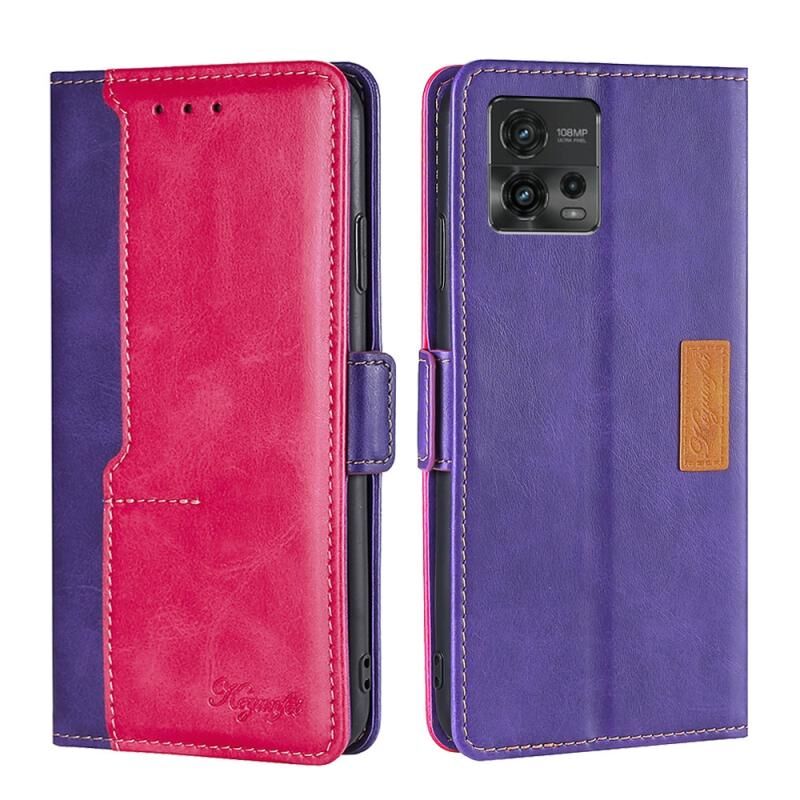 Για Motorola Moto G72 4G αντίθεση χρώμα πλευρά πόρπη δερμάτινη θήκη τηλεφώνου (μωβ + Rose Red)