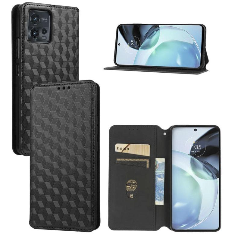 For Motorola Moto G72 4G Cubic Grid Texture Flip Leather Phone Case(Black)