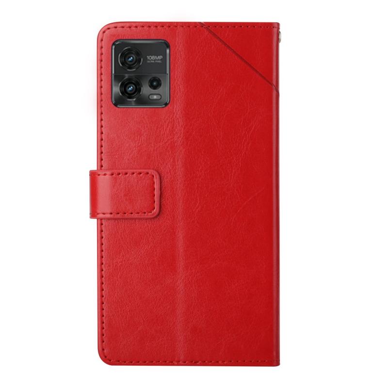 Θήκη τηλεφώνου από δέρμα με σχέδιο σε σχήμα Υ για Motorola Moto G72 4G HT01 (Κόκκινο)