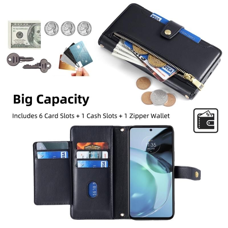 2. Λειτουργία πορτοφολιού πολλαπλών καρτών: Θήκες για κάρτες και διαμέρισμα με φερμουάρ για την αποθήκευση των πιστωτικών σας καρτών, μετρητών ή μικρών σημειώσεων για καθημερινή χρήση.