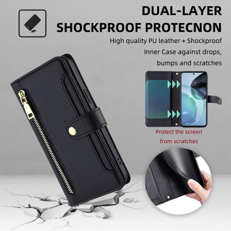 Θήκη τηλεφώνου δερμάτινη με φερμουάρ και σχέδιο αρνιού για Motorola Moto G72 4G (Μαύρο)