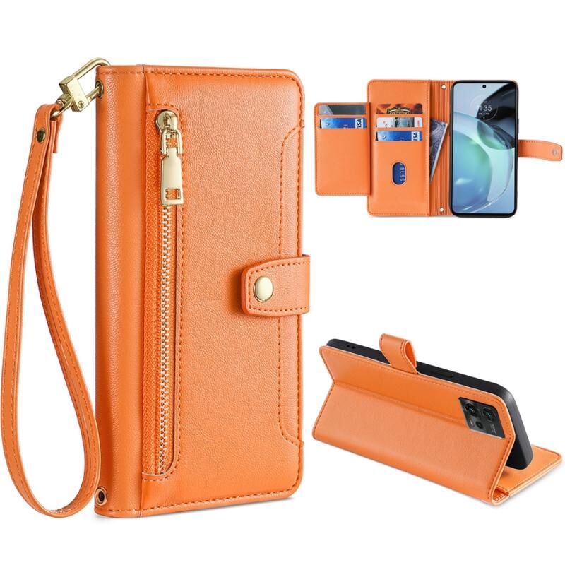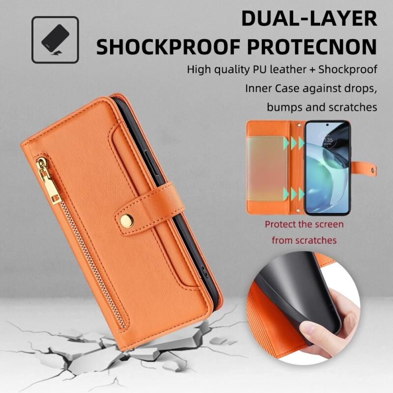 Θήκη τηλεφώνου δερμάτινη με φερμουάρ και σχέδιο αρνιού για Motorola Moto G72 4G (Μαύρο)