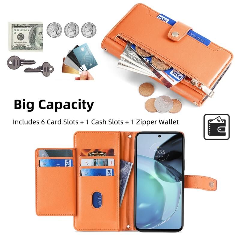 2. Λειτουργία πορτοφολιού πολλαπλών καρτών: Θήκες για κάρτες και διαμέρισμα με φερμουάρ για την αποθήκευση των πιστωτικών σας καρτών, μετρητών ή μικρών σημειώσεων για καθημερινή χρήση.