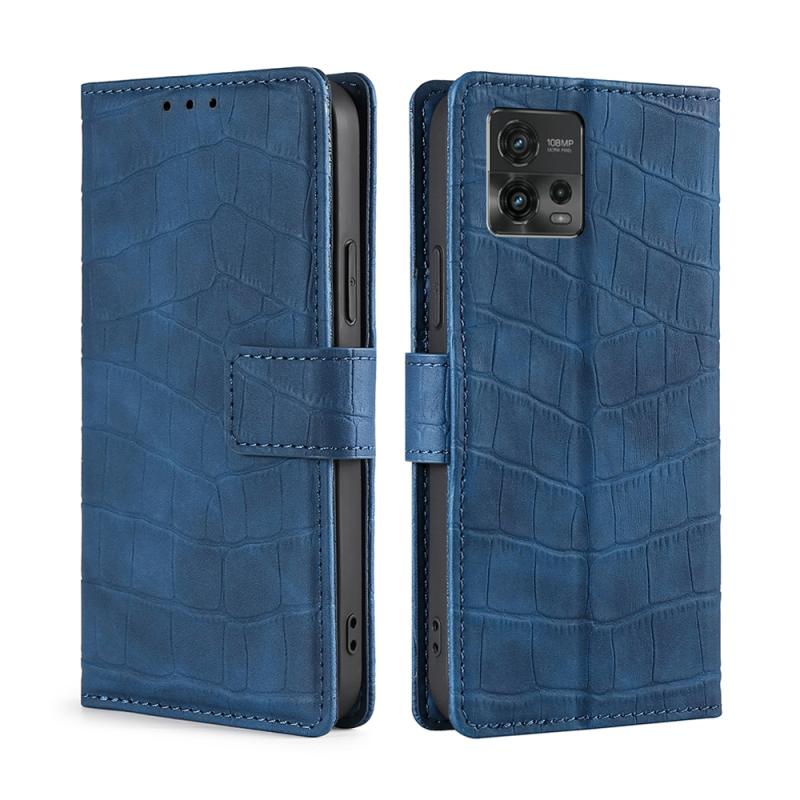 Θήκη τηλεφώνου δερμάτινη με μαγνητικό κούμπωμα και υφή κροκόδειλου για Motorola Moto G72 4G (Μπλε)