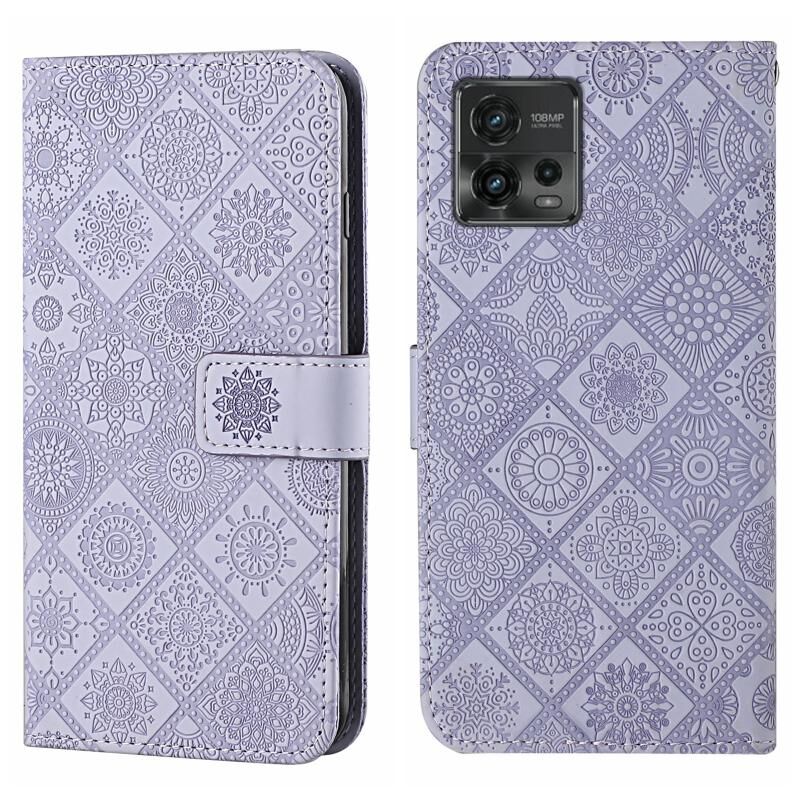 Για Motorola Moto G72 Ethnic Style ανάγλυφο μοτίβο δερμάτινη θήκη τηλεφώνου (μωβ)