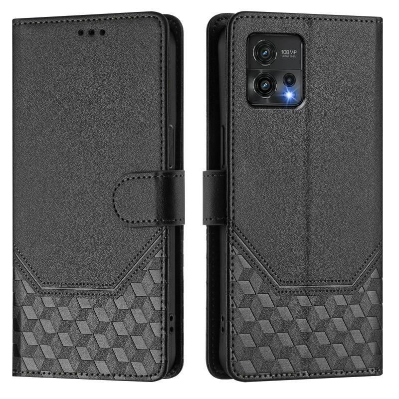 Για Motorola Moto G72 Honeycomb ανάγλυφο RFID δερμάτινη θήκη τηλεφώνου (Μαύρο)