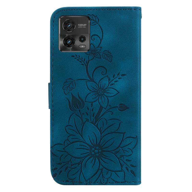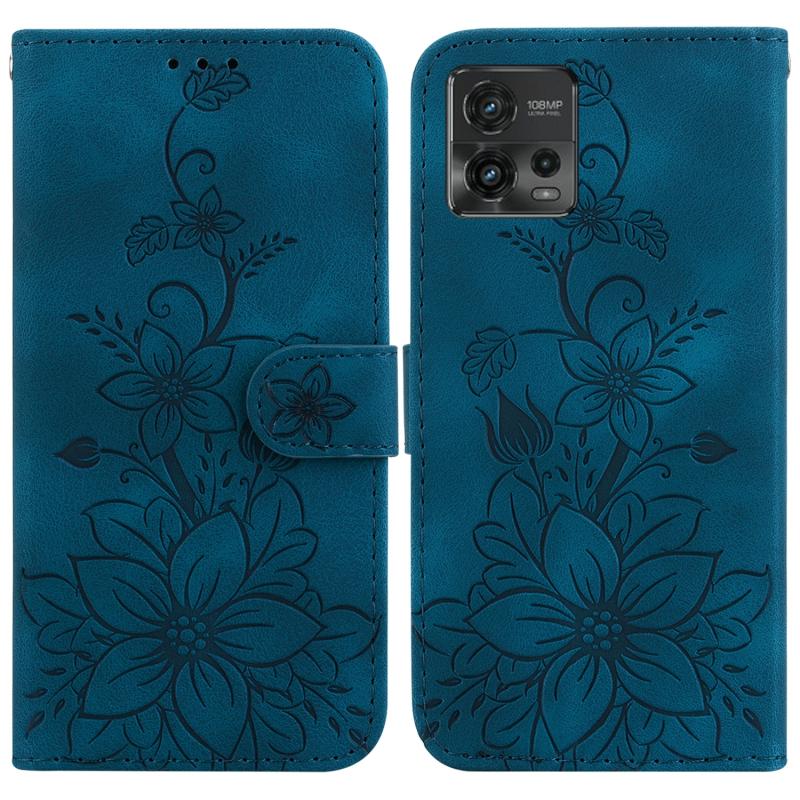 For Motorola Moto G72 Lily Embossed Leather Phone Case(Dark Blue)