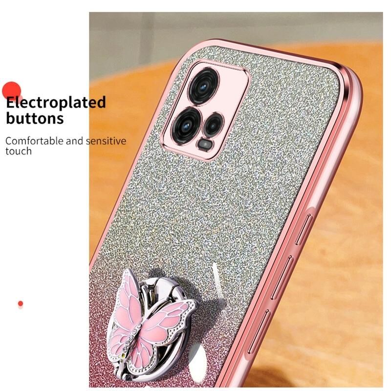 Για Motorola Moto G72 Επιμεταλλωμένο διαβάθμιση Glitter πεταλούδα κάτοχος TPU τηλέφωνο υπόθεση (Sierra Blue)