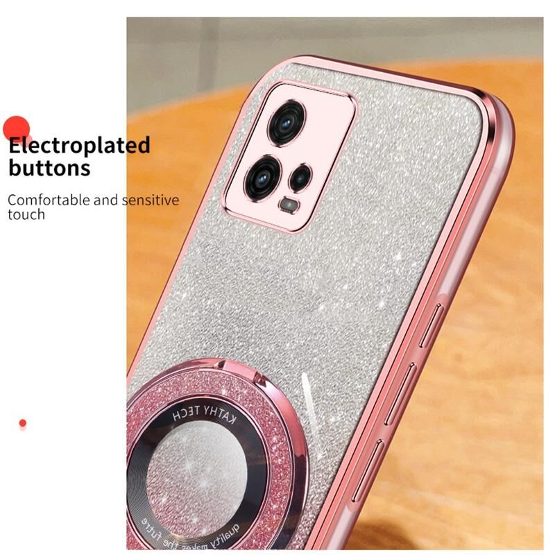 Για Motorola Moto G72 Επιμεταλλωμένο βαθμιδωτή Glitter στρογγυλή θήκη TPU τηλέφωνο κάτοχος (ασημί)