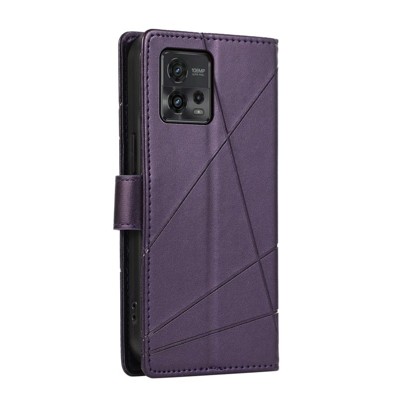 For Motorola Moto G72 PU Genuine Leather Texture Embossed Line Phone Case(Purple)