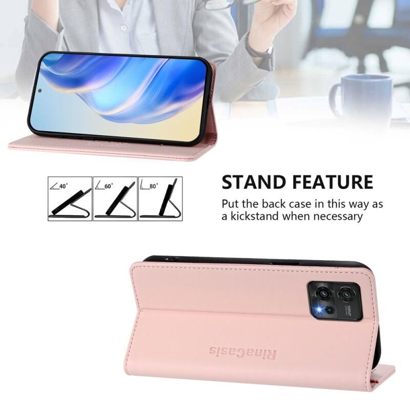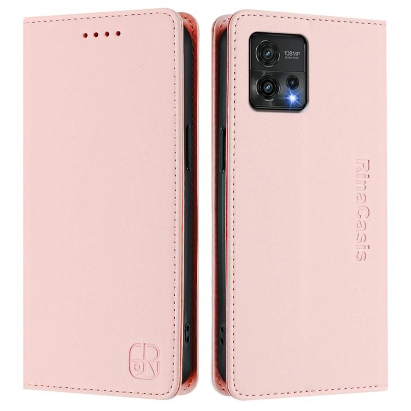 Θήκη τηλεφώνου δερμάτινη με μαγνητική απορρόφηση και διπλή πτυχή για Motorola Moto G72 RC01 (ρόζ)