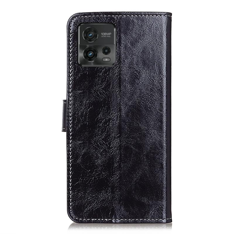 Θήκη τηλεφώνου από δέρμα με υφή Crazy Horse και σχέδιο flip για Motorola Moto G72 (Μαύρο)