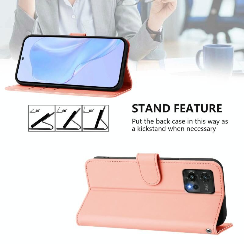 Για Motorola Moto G72 Skin Feel Solid Color Leather Phone Case με κορδόνι (ροζ)