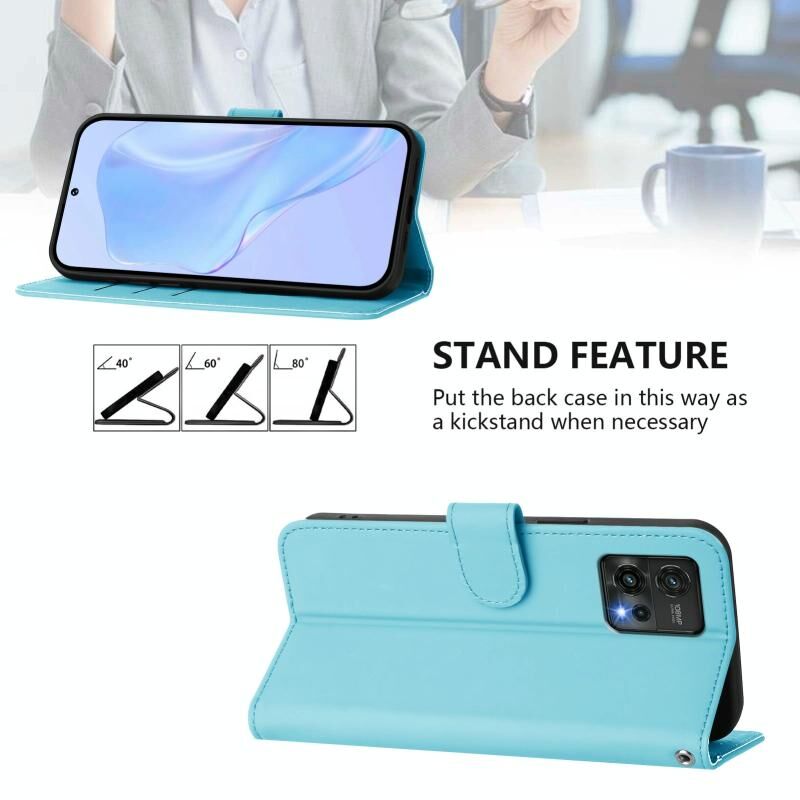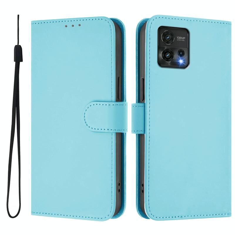 Για το Motorola Moto G72 Skin Feel Solid Color δερμάτινη θήκη τηλεφώνου με κορδόνι (Sky Blue)