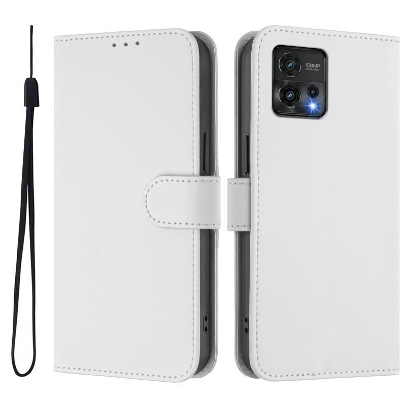 Για Motorola Moto G72 Skin Feel Solid Color Leather Phone Case με κορδόνι (Λευκό)