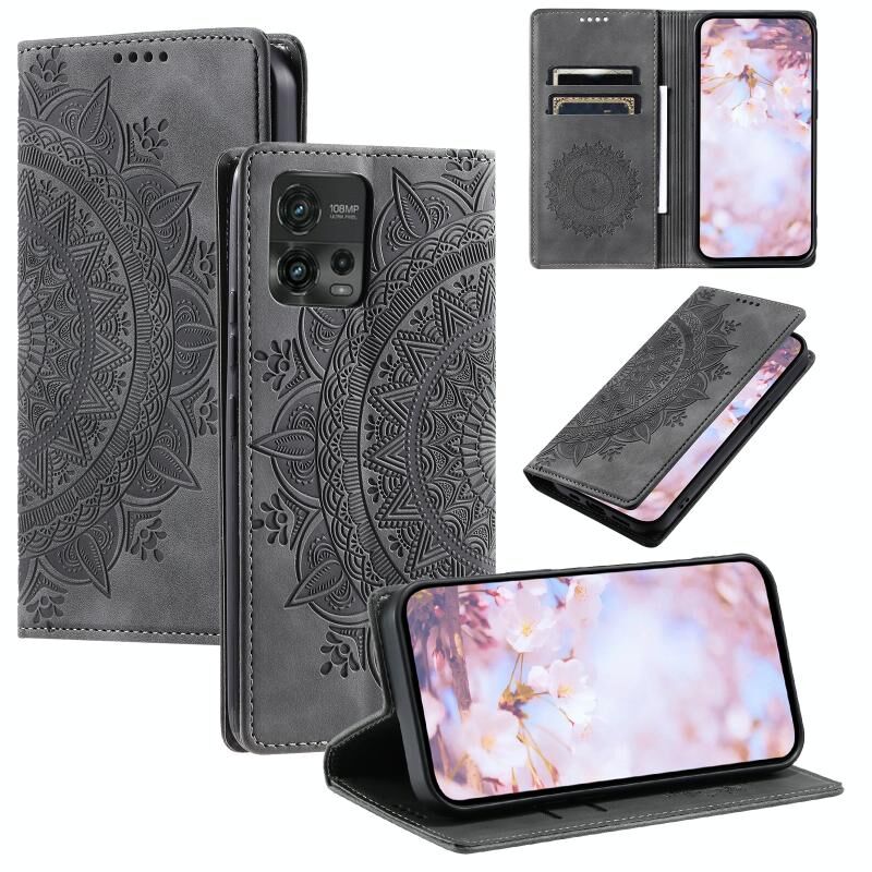 Για Motorola Moto G72 Totem ανάγλυφη μαγνητική δερμάτινη θήκη τηλεφώνου (Γκρι)