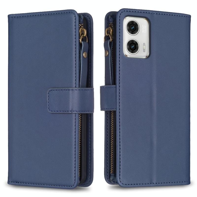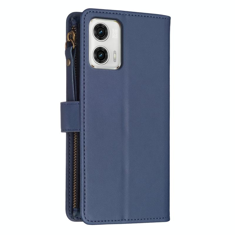 Για Motorola Moto G73 5G, Θήκη Τηλεφώνου από Δέρμα με Φερμουάρ και 9 Θήκες Καρτών (Μπλε)