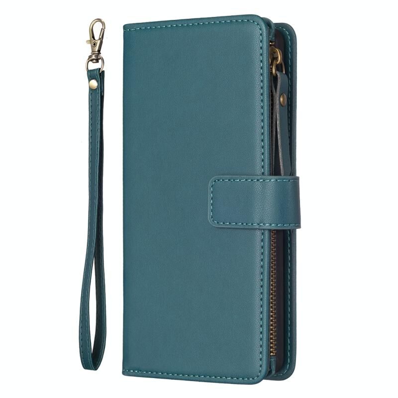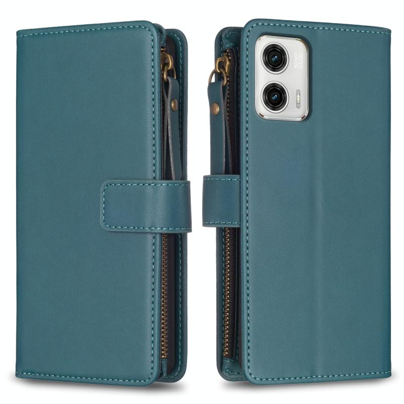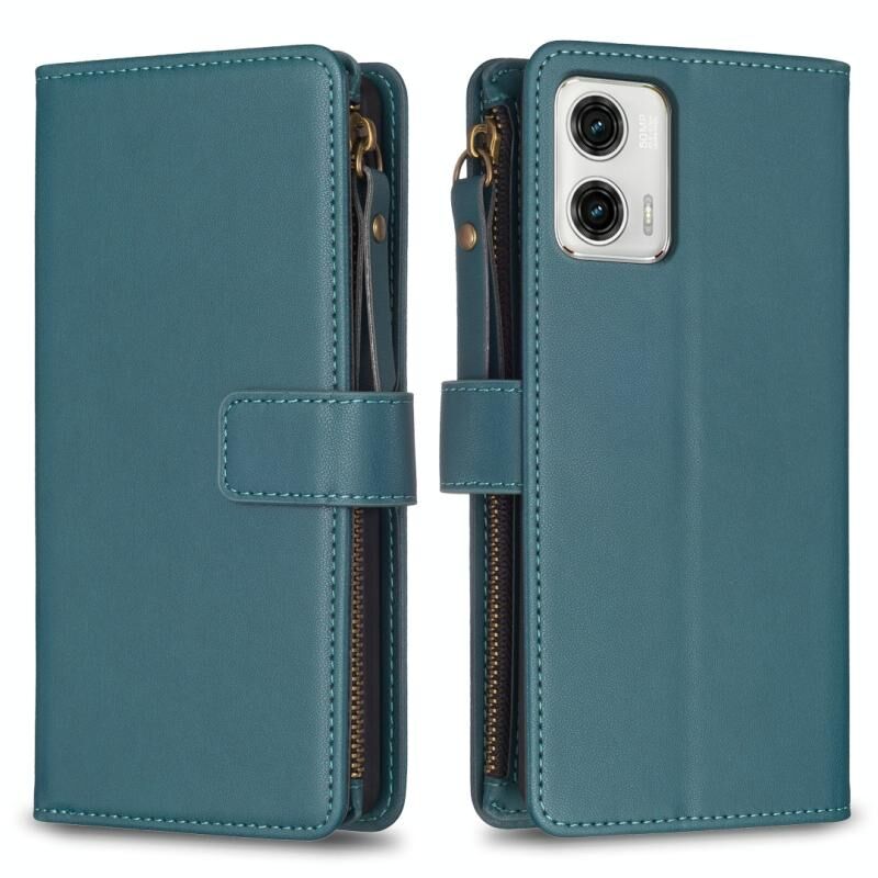 Για Motorola Moto G73 5G, Θήκη Τηλεφώνου από Δέρμα με Φερμουάρ και 9 Θήκες Καρτών (πράσινο)