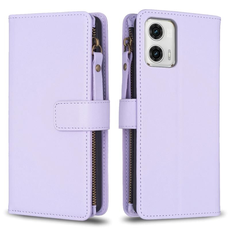 Για Motorola Moto G73 5G, Θήκη Τηλεφώνου από Δέρμα με Φερμουάρ και 9 Θήκες Καρτών (ανοιχτό μωβ)