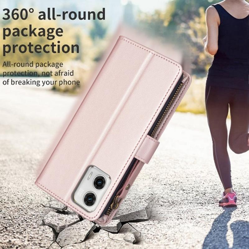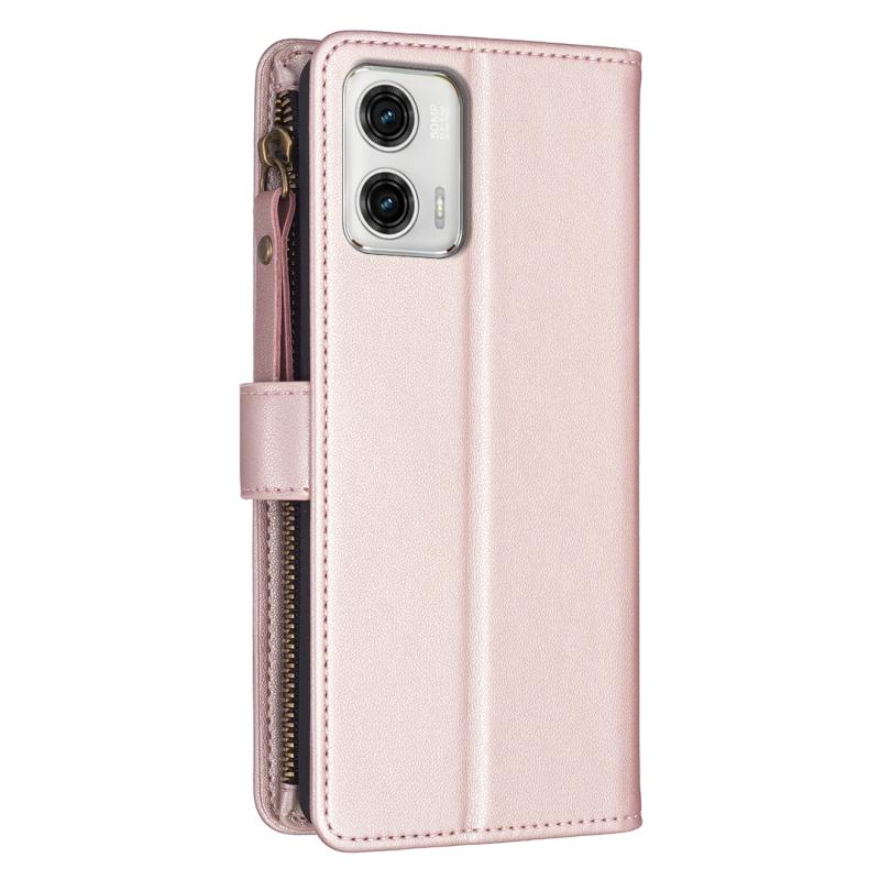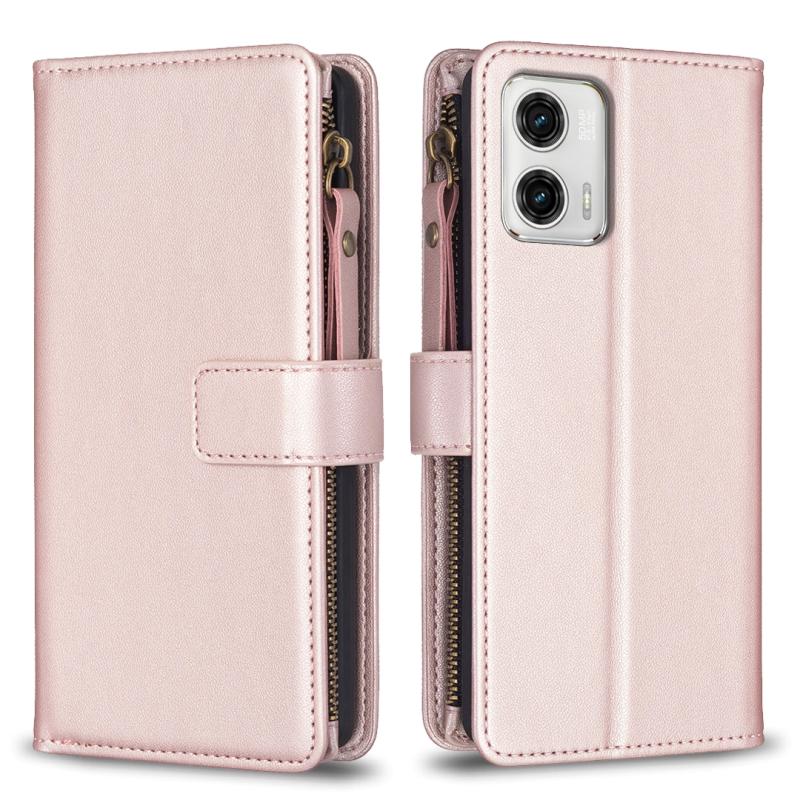 Για Motorola Moto G73 5G, Θήκη Τηλεφώνου από Δέρμα με Φερμουάρ και 9 Θήκες Καρτών (Ροζ χρυσός)