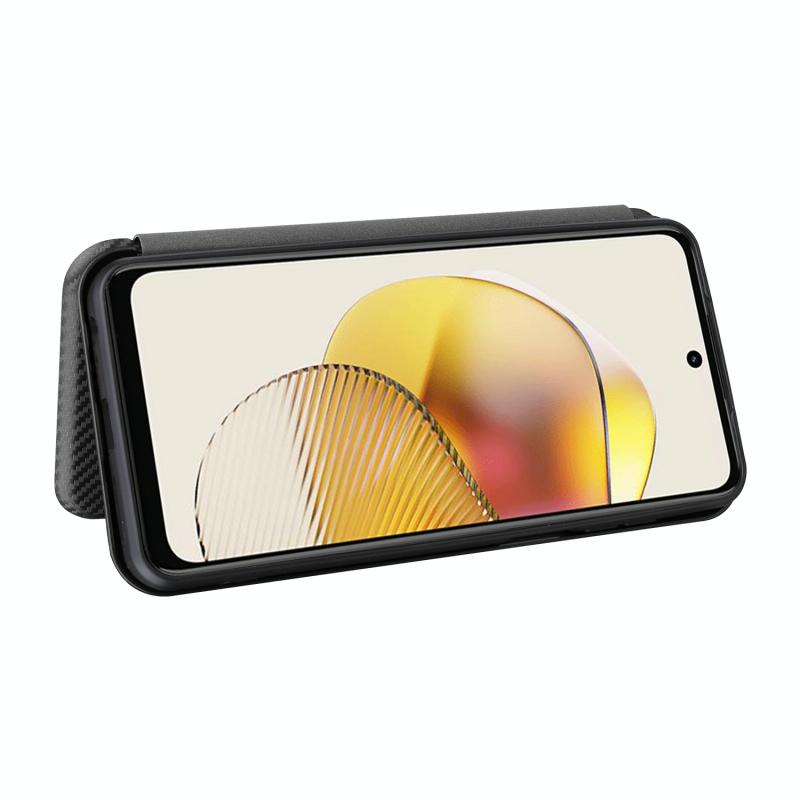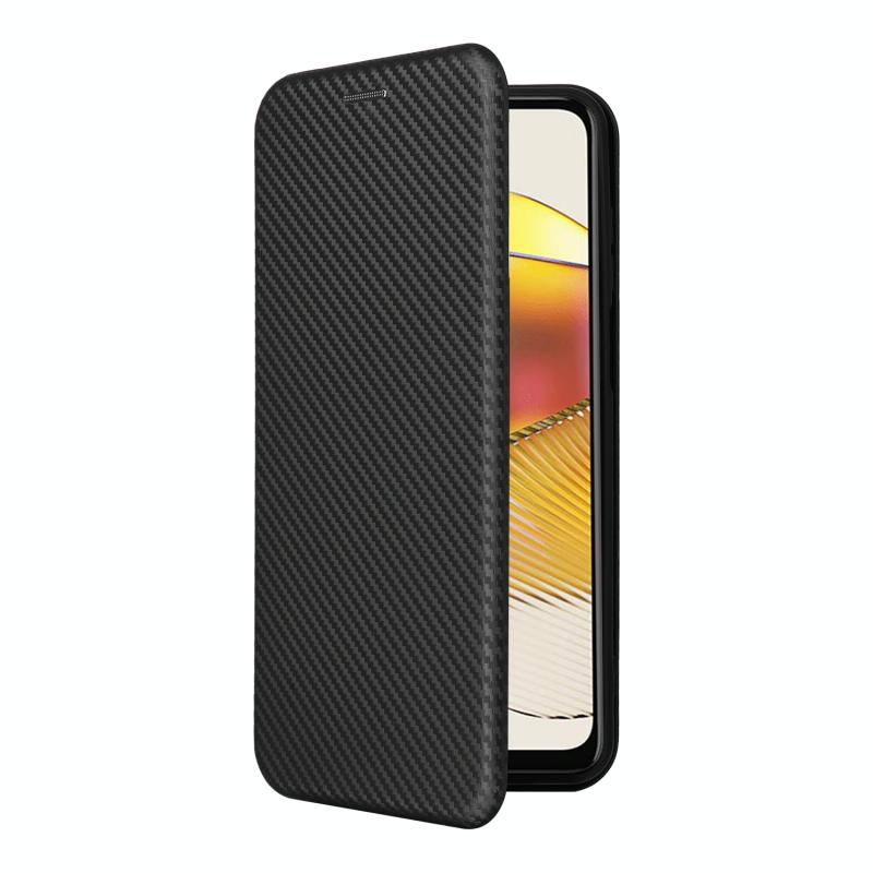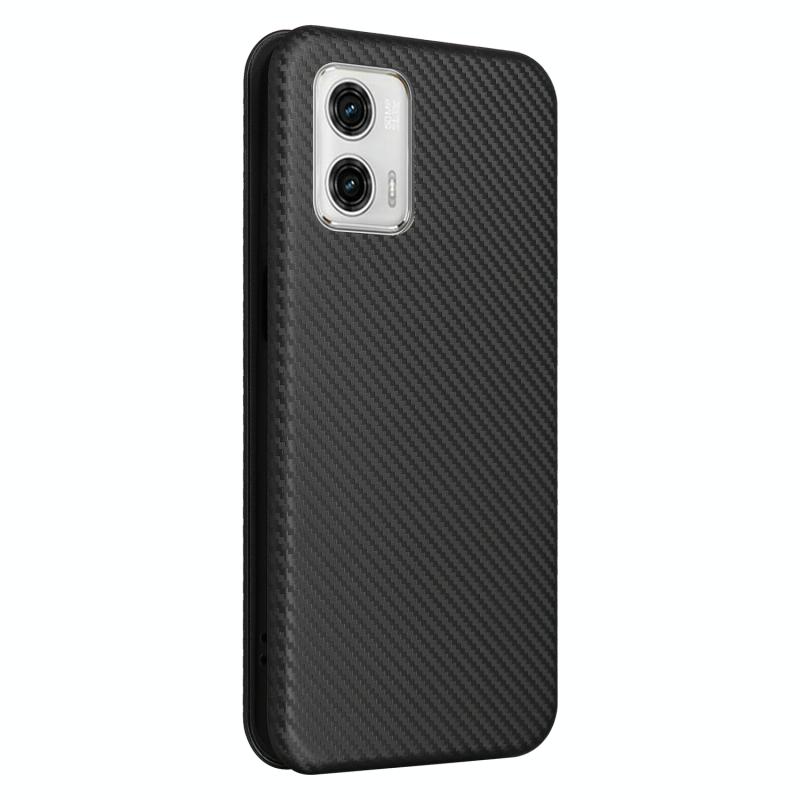 Θήκη τηλεφώνου από δέρμα με υφή ανθρακονημάτων για Motorola Moto G73 5G (Μαύρο)