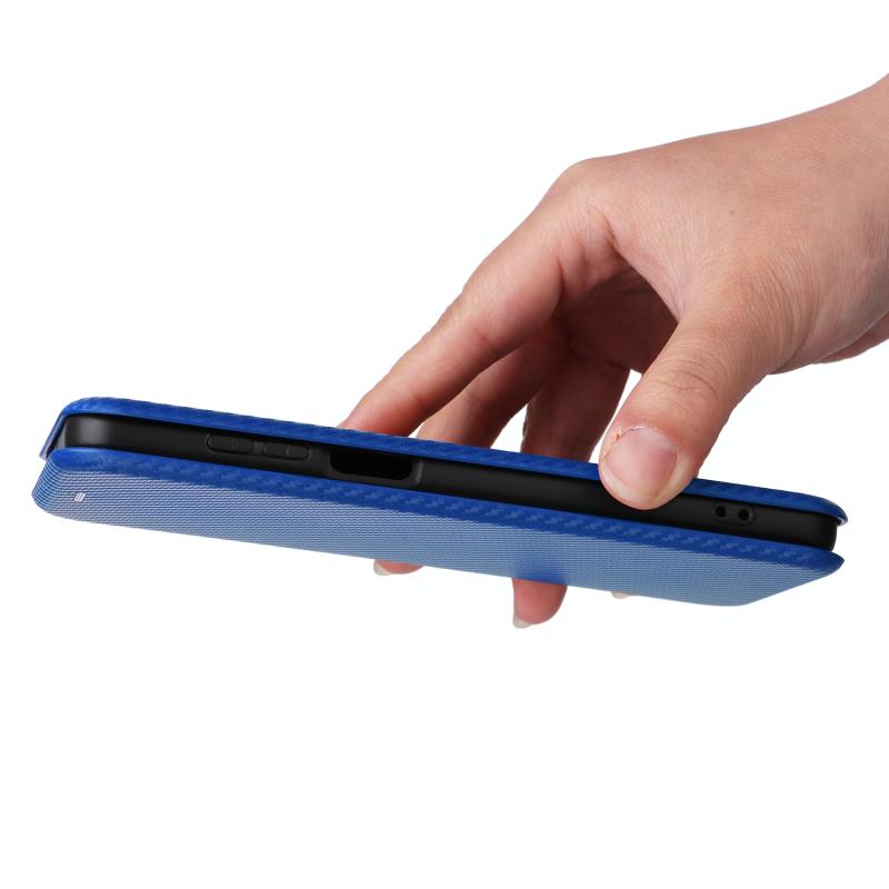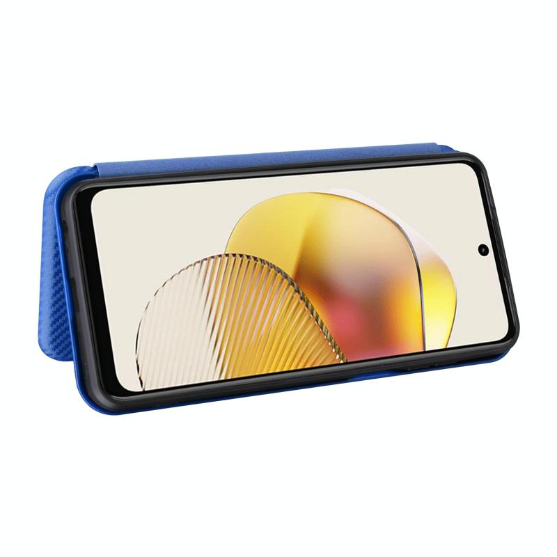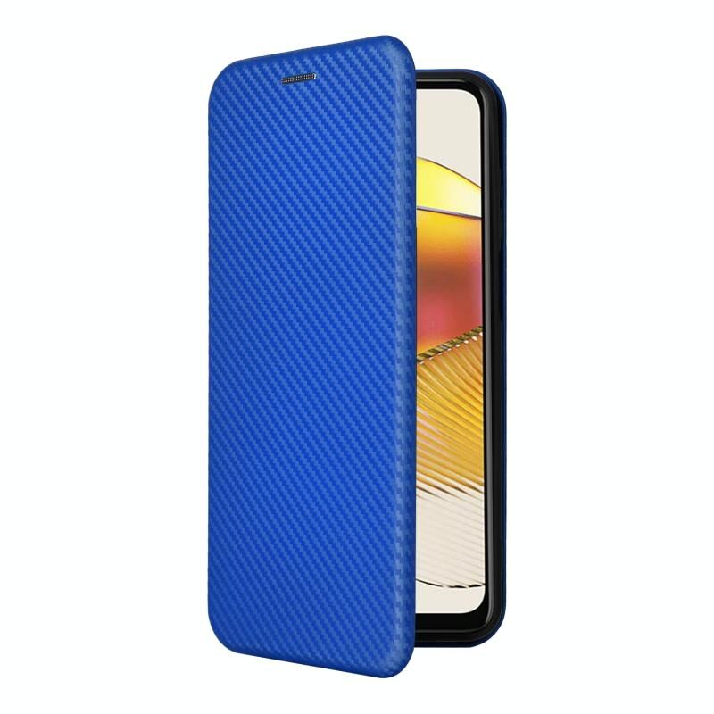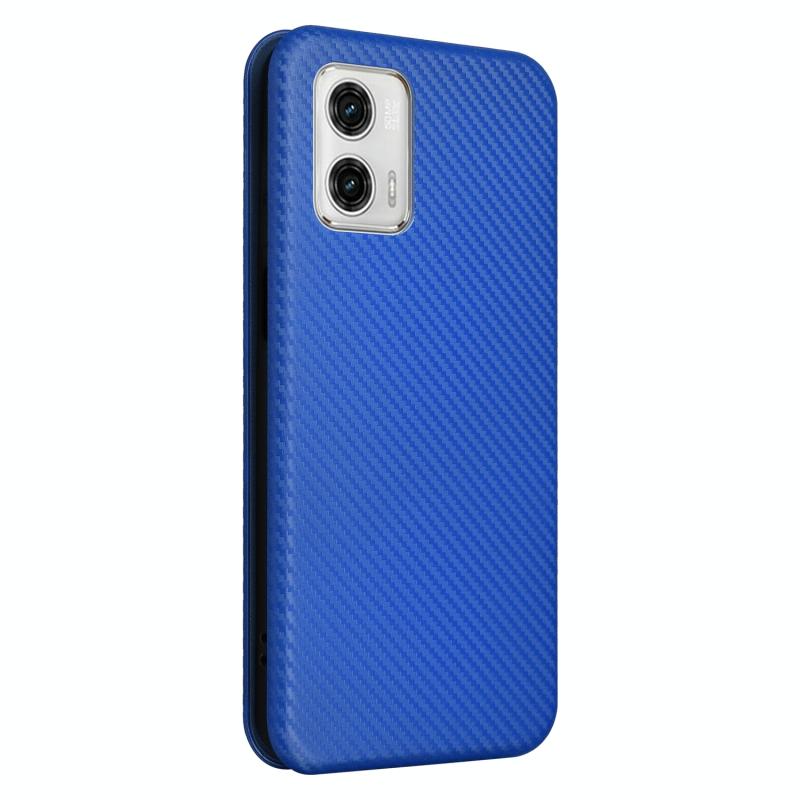 Θήκη τηλεφώνου από δέρμα με υφή ανθρακονημάτων για Motorola Moto G73 5G (Μπλε)