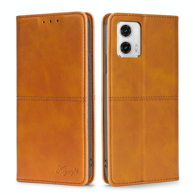 Θήκη τηλεφώνου Motorola Moto G73 5G, δερμάτινη, οριζόντια, με μαγνητικό κλείσιμο και υφή αγελάδας (Ανοιχτό καφέ)