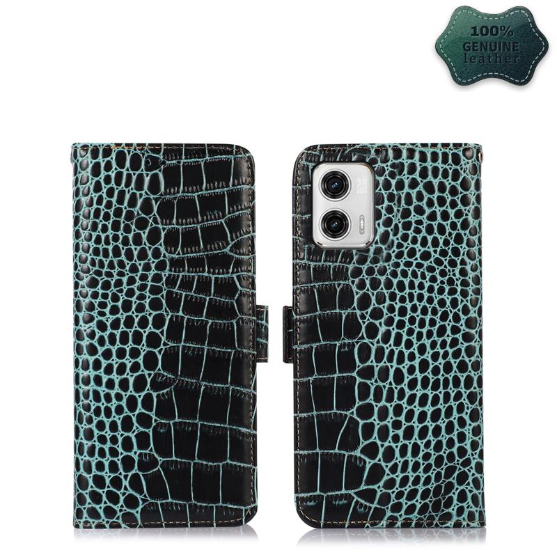 Θήκη τηλεφώνου από γνήσιο δέρμα αγελάδας Crocodile Top Layer για Motorola Moto G73 5G (πράσινο)