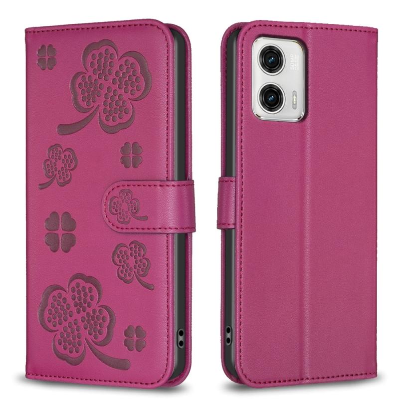 For Motorola Moto G73 5G Four-leaf Embossed Leather Phone Case(Rose Red)