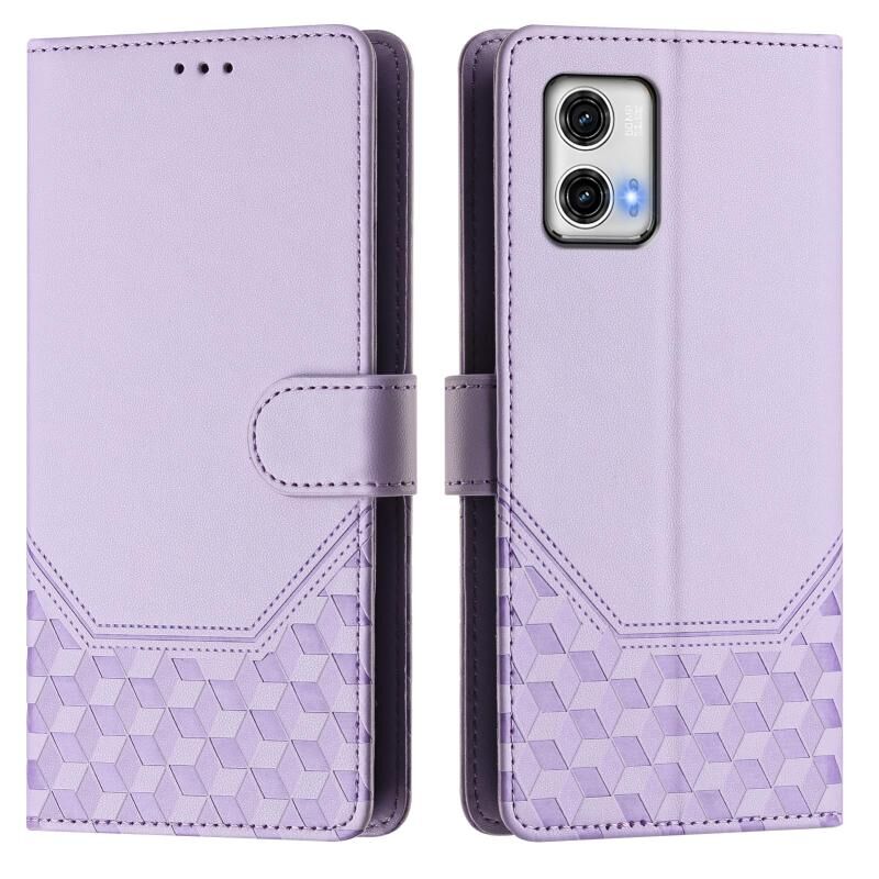 Για Motorola Moto G73 5G Honeycomb ανάγλυφη RFID δερμάτινη θήκη τηλεφώνου (ανοιχτό μοβ)
