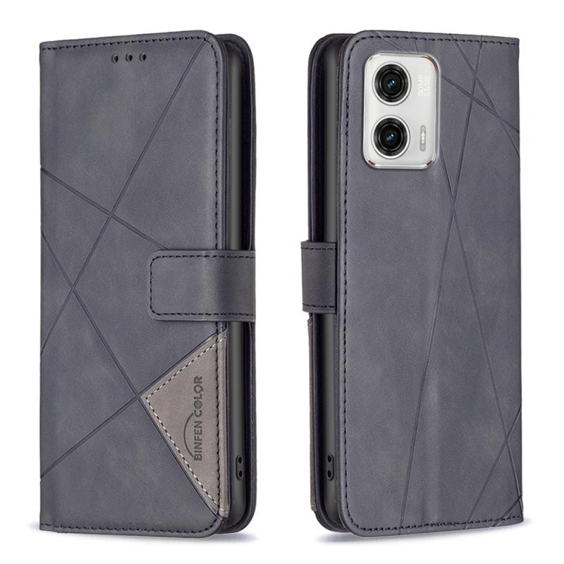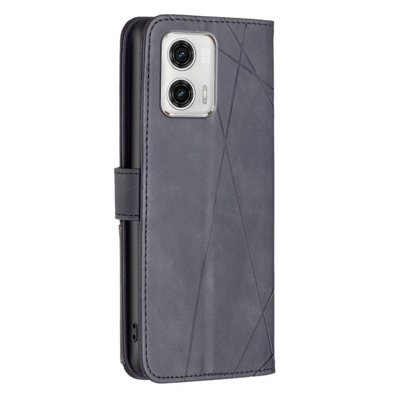Θήκη τηλεφώνου δερμάτινη με μαγνητικό κούμπωμα και υφή ρόμβου για Motorola Moto G73 5G (Μαύρο)