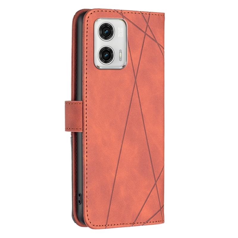 Θήκη τηλεφώνου δερμάτινη με μαγνητικό κούμπωμα και υφή ρόμβου για Motorola Moto G73 5G (Καφέ)