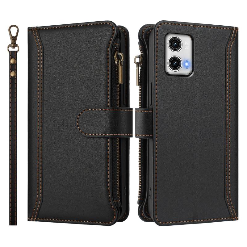 For Motorola Moto G73 5G Magnetic Closure 9 Card Slots Zipper Leather Case with Hand Strap(Black)