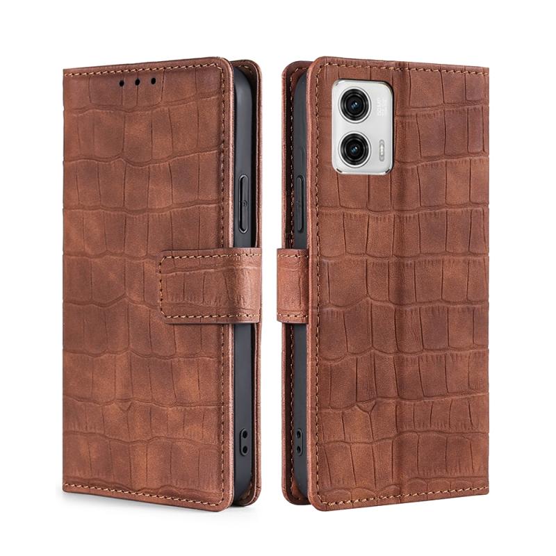 Θήκη τηλεφώνου δερμάτινη με μαγνητικό κούμπωμα και υφή κροκόδειλου για Motorola Moto G73 5G (Καφέ)