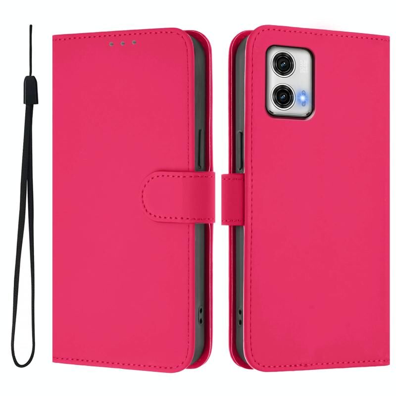 Για Motorola Moto G73 5G Skin Feel Solid Color Leather Phone Case με κορδόνι (Ροζέ κόκκινο)