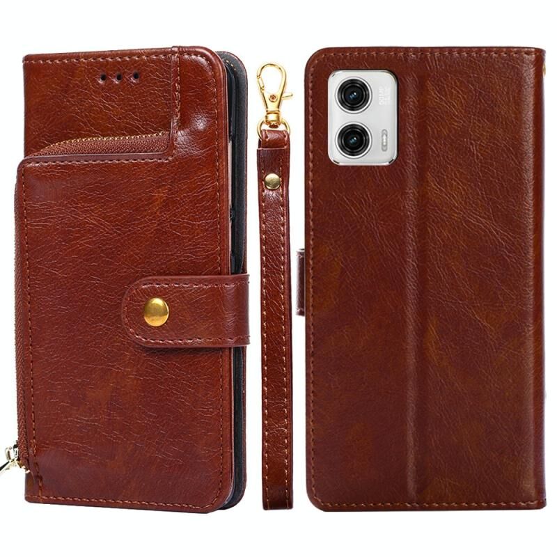 Για Motorola Moto G73 5G φερμουάρ τσάντα δερμάτινη θήκη τηλεφώνου (καφέ)