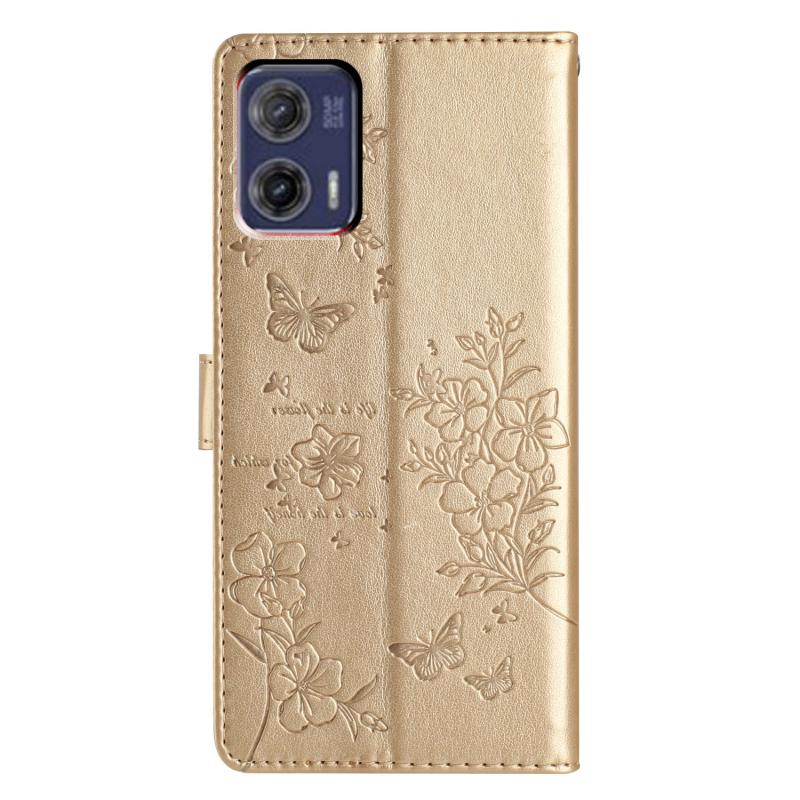 For Motorola Moto G73 Butterflies and Flowers Leather Phone Case(Gold)