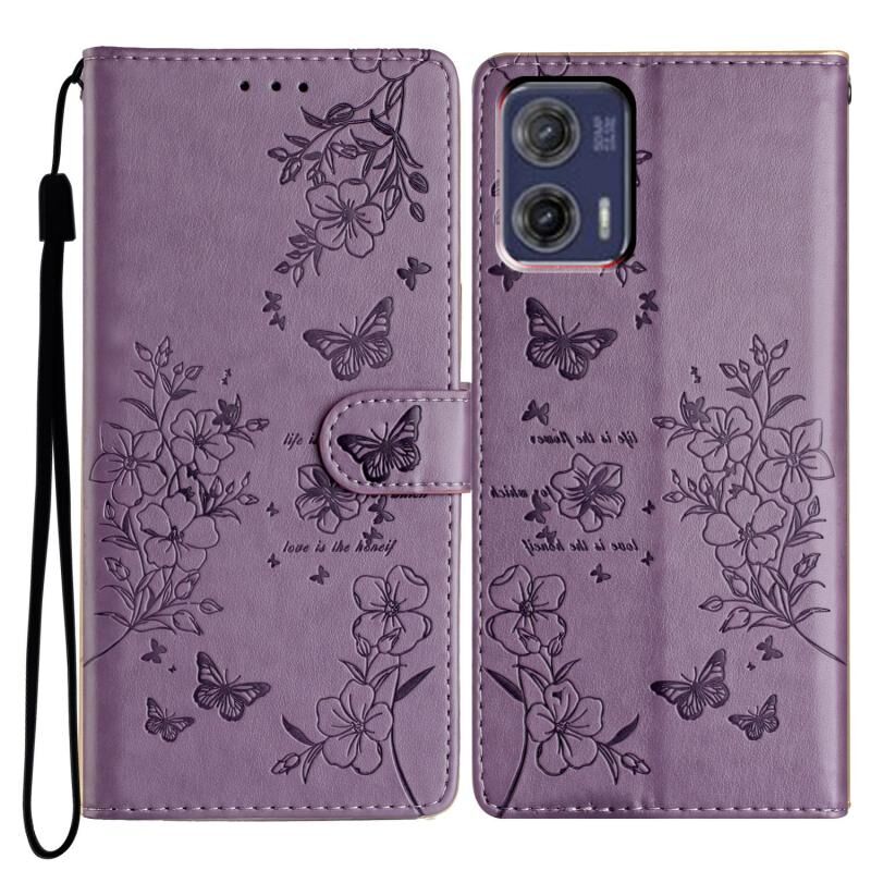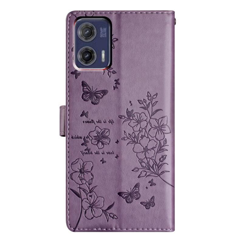 Θήκη τηλεφώνου δερμάτινη για Motorola Moto G73 με σχέδια πεταλούδες και λουλούδια (Χρυσό)