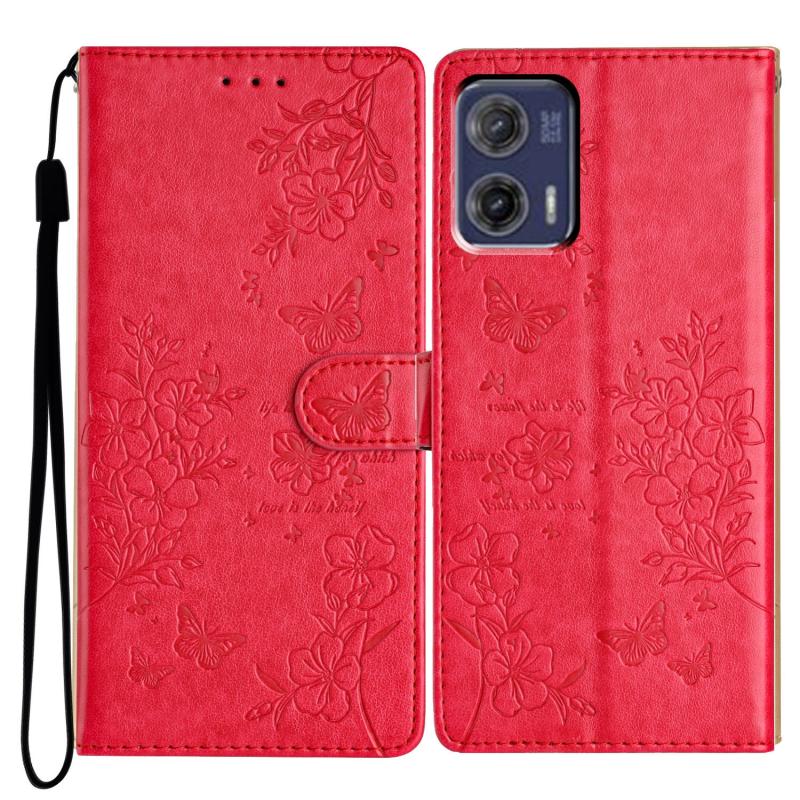 For Motorola Moto G73 Butterflies and Flowers Leather Phone Case(Red)