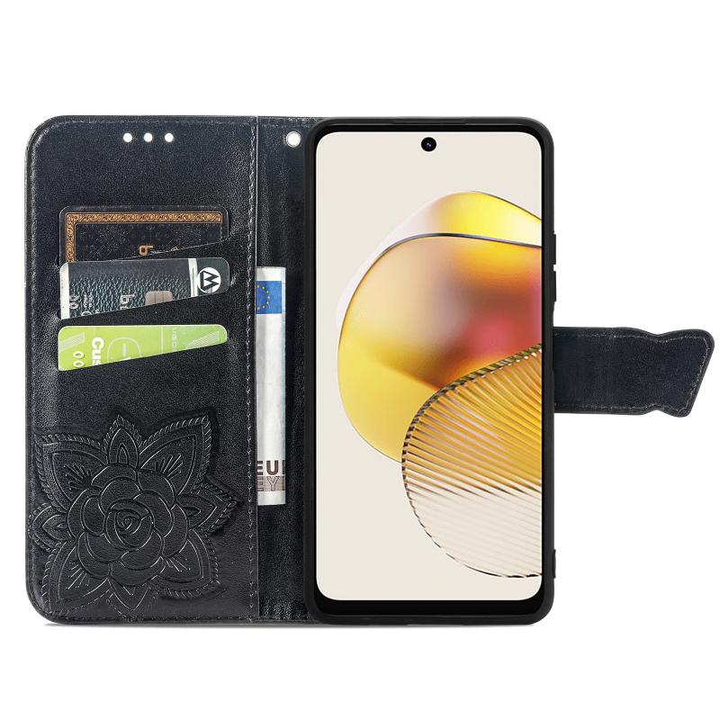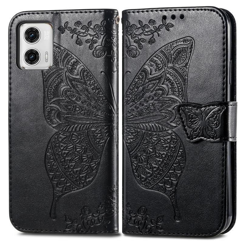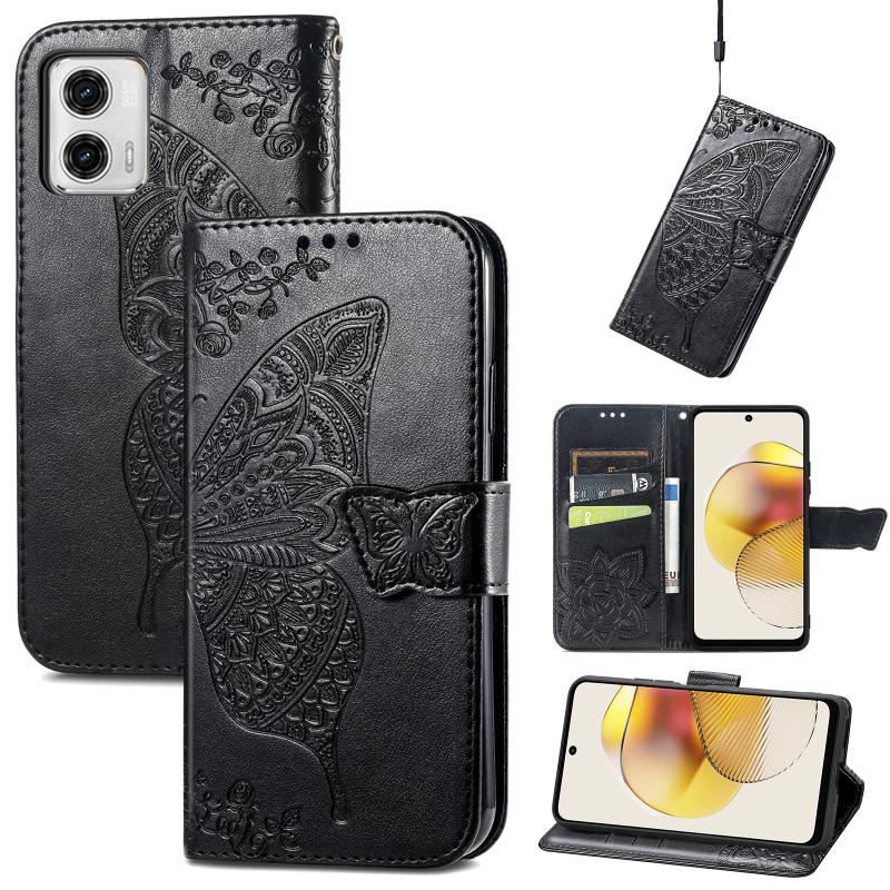 For Motorola Moto G73 Butterfly Love Flower Embossed Flip Leather Phone Case(Black)