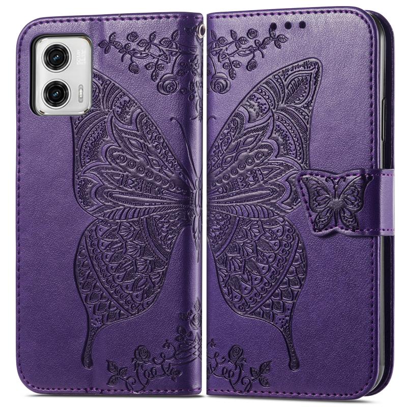 For Motorola Moto G73 Butterfly Love Flower Embossed Flip Leather Phone Case(Dark Purple)