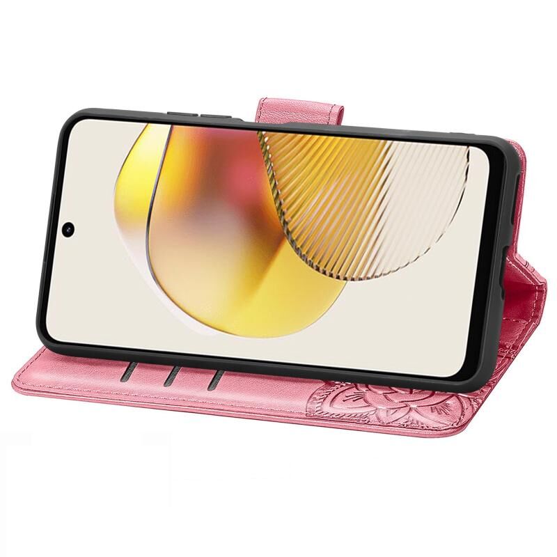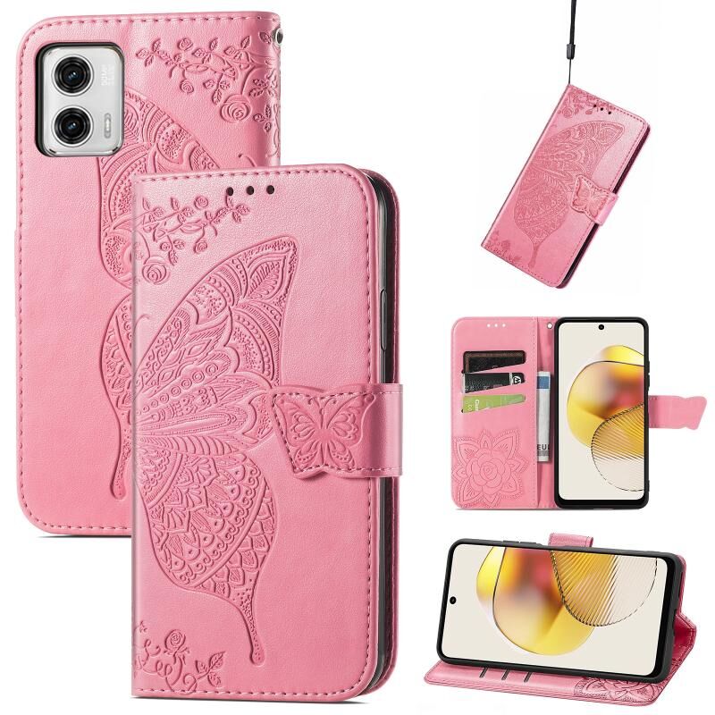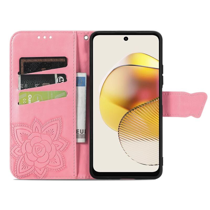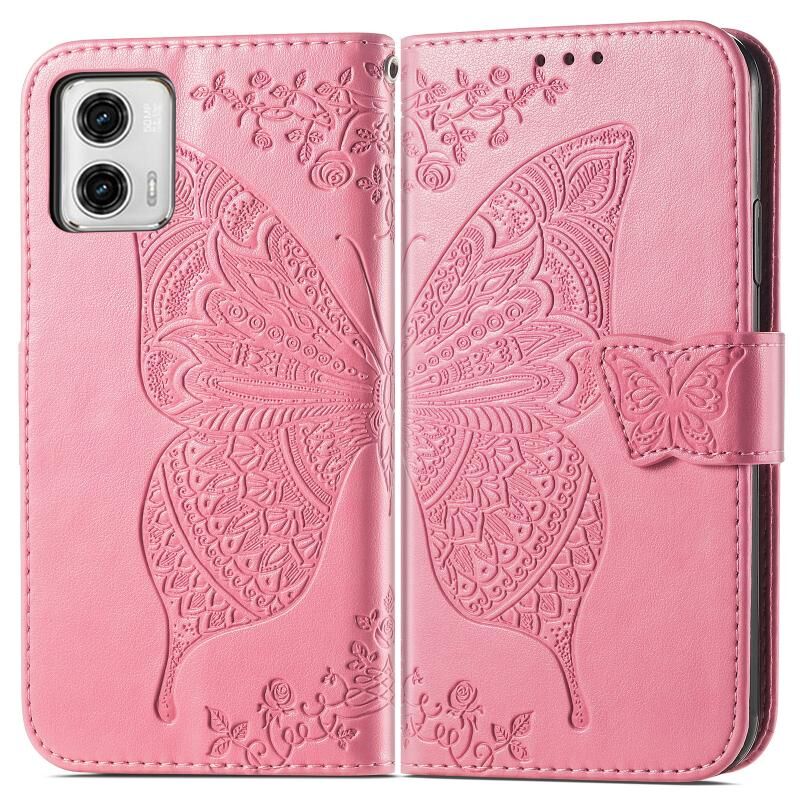 Θήκη τηλεφώνου από δέρμα με ανάγλυφο σχέδιο πεταλούδας και λουλουδιών για Motorola Moto G73 (Μπλε)