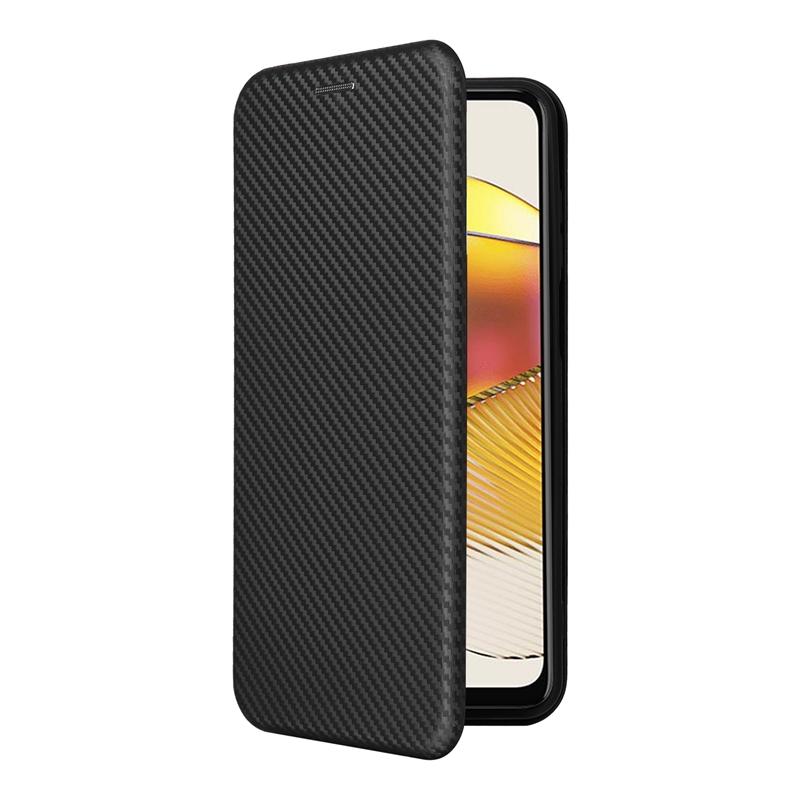 Θήκη τηλεφώνου δερμάτινη, τύπου flip, με υφή ανθρακονημάτων για Motorola Moto G73 (Μπλε)